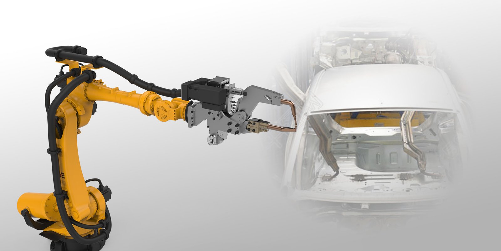 The slim wrist is very suitable for spot welding in the body in white.