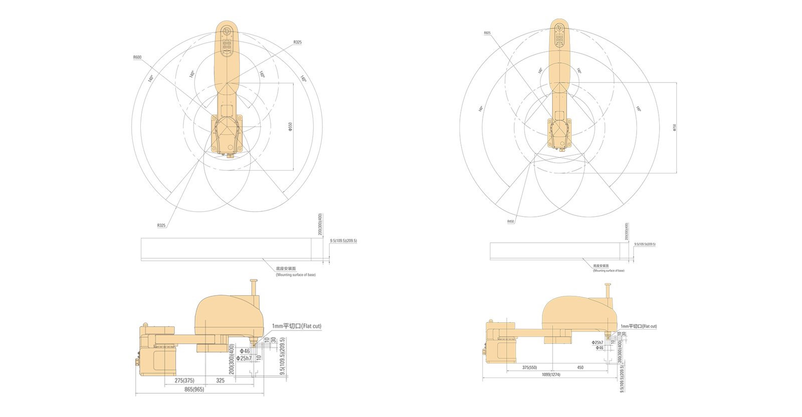 | 运动范围 Working range | 轴1 Axis 1 | -135°/+135° | |
